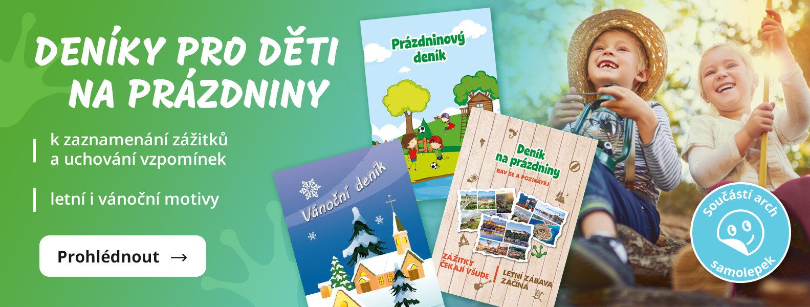Formát B6 (17,6 x 12,5 cm), 24 stran Součástí deníku je arch barevných samolepek.