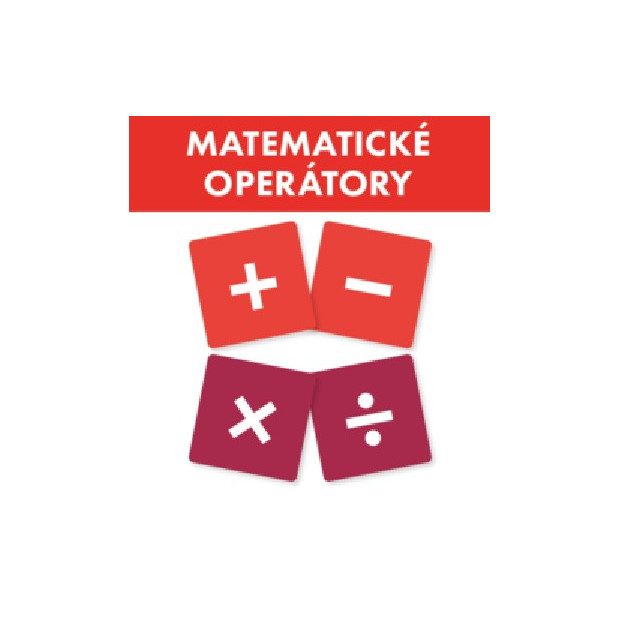 Sada obsahuje 6 karet s matematickými operátory. Na 3 kartách je operátor "+" a na zbylých 3 kartách operátor "-". Na druhé straně karet jsou operátory "x" a "÷".