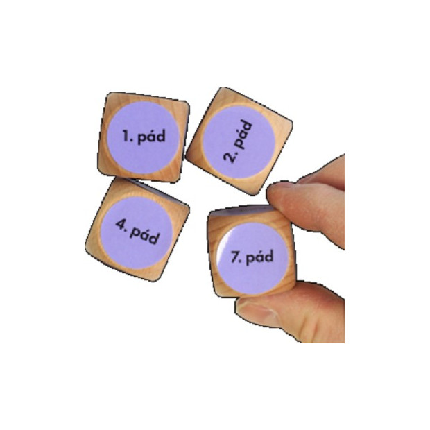Kostky s mluvnickými pády (na kostkách jsou uvedeny jen pády 1., 2., 3., 4., 6. a 7.) pro zajímavé procvičování v hodinách češtiny i dalších jazyků.