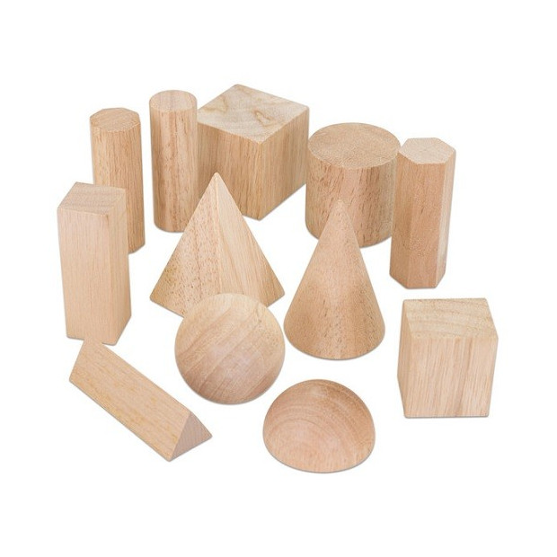 - sada 12 geometrických těles z masivního nelakovaného dřeva