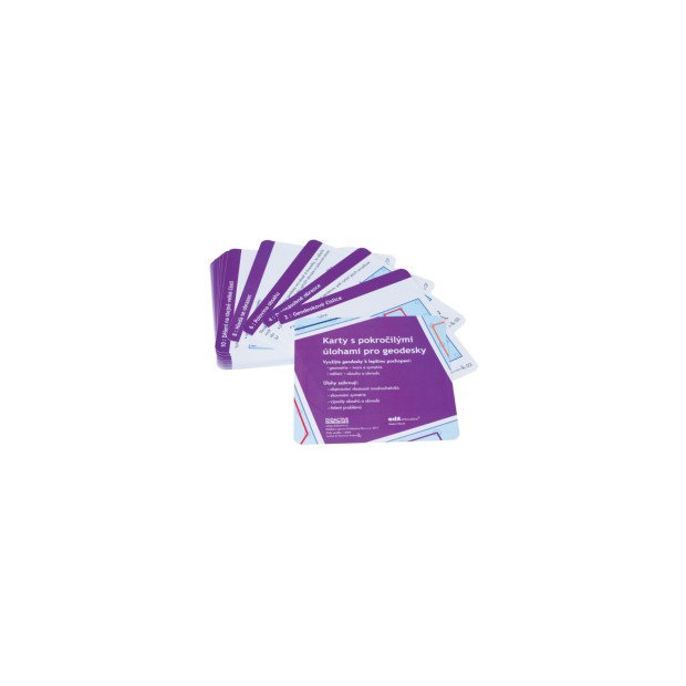 Sada oboustranně potištěných karet z tvrdého ohebného a omyvatelného materiálu obsahuje 27 úloh a jejich řešení. Karty s řešeními jsou oddělená od karet s úlohami. Jednotlivé karty mají rozměr cca 15x15cm.