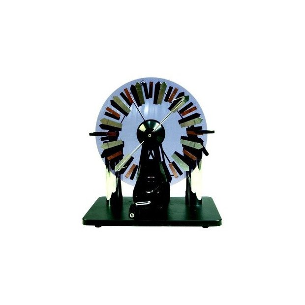 Podle Wimshursta, jednoduché, odolné provedení. Pro generování vysokého stejnosměrného napětí. Na podstavci, s ruční klikou a řemenovým pohonem, s izolačními kouřově zabarvenými disky z plexiskla, 2 leidenské lahve a jiskřiště.