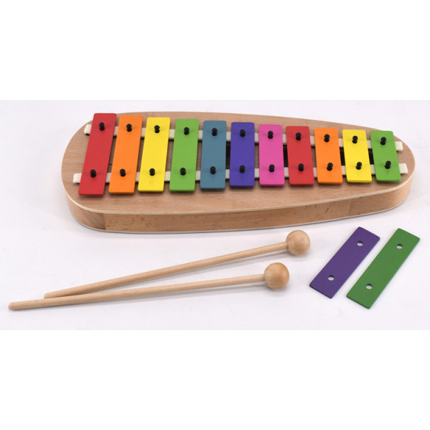 Zvonkohra díky přesně umístěným rezonančním otvorům vytváří plný a harmonický zvuk. Díky svému zaoblenému tvaru je nástroj vhodný a bezpečný pro děti. Díky svému rozsahu (c3-f4) můžete hrát i rozsáhlejší melodie - snadnou výměnou destičky si můžete zvonkohru přeladit na G dur nebo F dur. Zvonkohra se dodává včetně dvou bukových paliček, které si můžete snadno uklidit přímo do těla nástroje. Stejně tak i přídavné destičky (pro přeladění na G dur nebo F dur) jsou uskladněné přímo v těle nástroje.