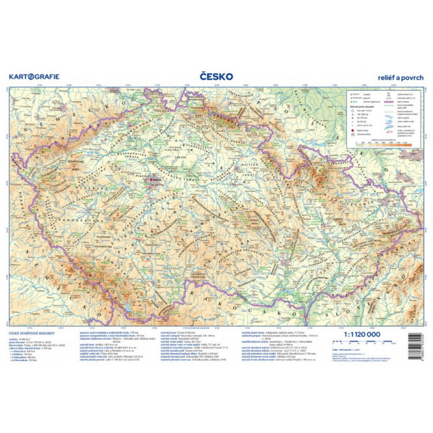 Pohotový pomocník při orientaci v zeměpisu českých zemí – to je naše příruční mapa. Získáte díky ní přehled o všech významných nížinách, pahorkatinách i horstvech, nejvyšších i mnoha dalších vrcholech, stejně jako husté říční síti a všech větších vodních plochách. Fyzická mapa obsahuje navíc všechny národní parky a CHKO na území Česka, včetně CHKO Brdy, zřízené od 1. ledna 2016. V administrativní mapě pak získáte přehled o správní rozdělení naší republiky, až do úrovně obcí s rozšířenou působností.