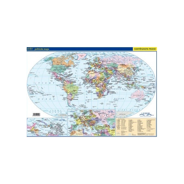 V politické mapě naleznete všechny státy, včetně jejich hlavních měst, ale také závislá a sporná území. Evropa a oblast Karibského moře jsou zpracovány ve větších měřítcích, pro jejich lepší přehlednost.