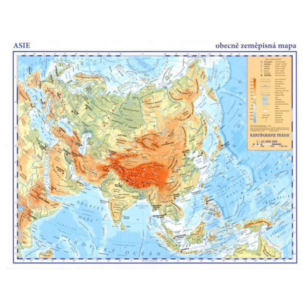 Příruční mapa praktického formátu nabízí přehledné zpracování obecného zeměpisu Asie.
