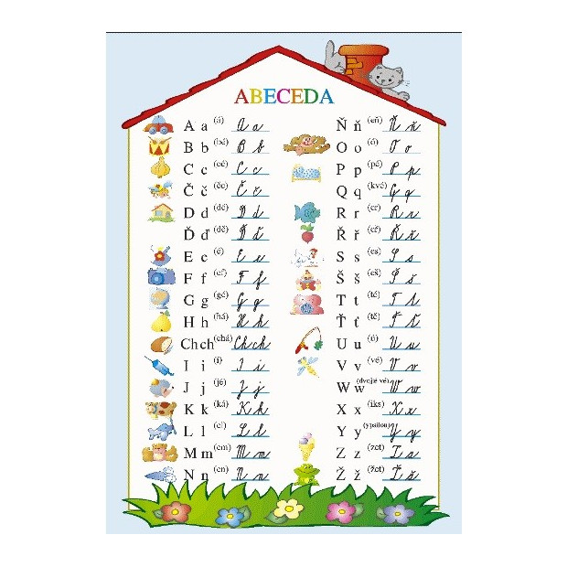 Aktuální tabule psacího písma doplněná obrázky.
