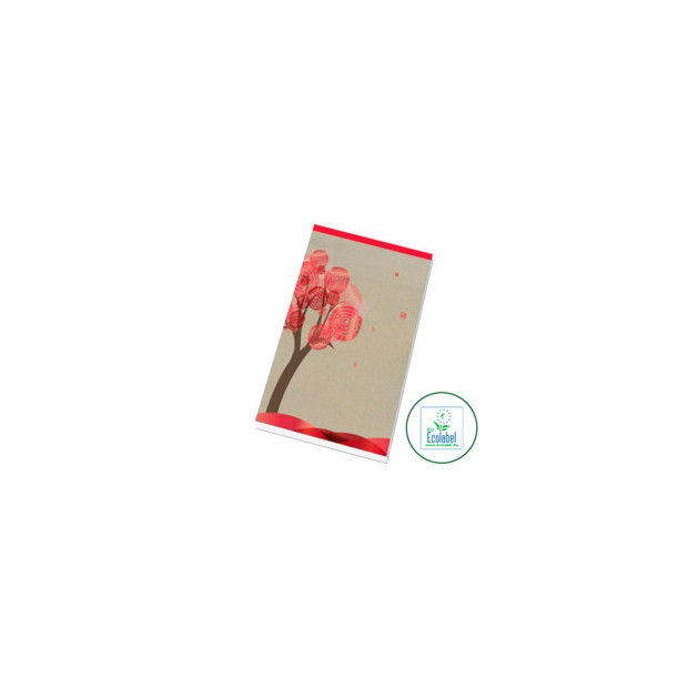 Univerzální linkovaný blok z recyklovaného papíru s perforací, sešitý skobami na kratší straně.