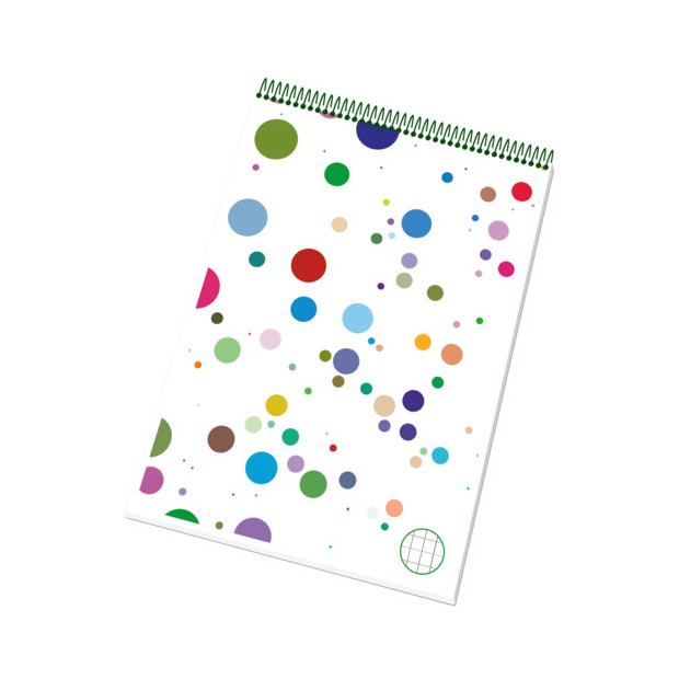 Univerzální čtverečkovaný blok se spirálou na kratší straně, s perforací pro snadné odtržení papíru.