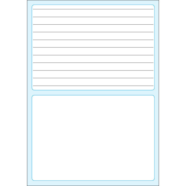 Horní polovina každé strany školního sešitu 413+ je linkovaná (šířka řádků je 12 mm) a spodní polovina obsahuje rámeček bez linek. Sešit je tak vhodný pro spojení textového a obrazového zápisu (nakreslení obrázku nebo schématu k probírané látce). Žáci jej mohou využít zejména pro literární výchovu, čtenářský deník nebo zápisy z prvouky.