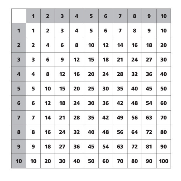 násobilková tabulka 1 - 100