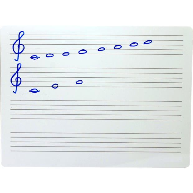 Mazací, stíratelná tabulka s notovou osnovou na jedné a volnou plochou na druhé straně.