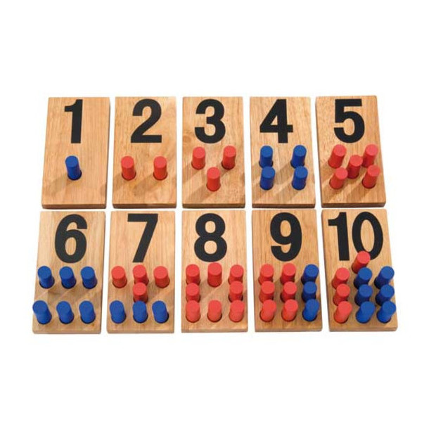 - sada 10 dřevěných destiček s čísly a předvrtanými otvory