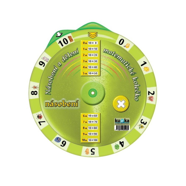 Otočné matematické kolečko, které hravou formou pomáhá při výuce malé násobilky do 100 na přední straně a dělení čísly 1 až 10 na zadní straně.