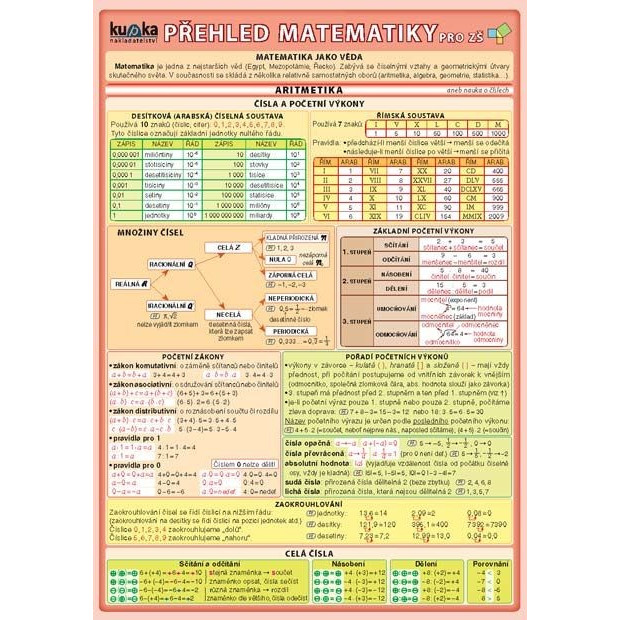 Přehledně zpracované učivo základní školy - od základních početních výkonů až po geometrii a statistiku.