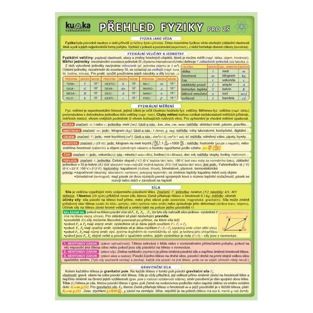 Přehledně zpracované učivo základní školy - od základních pojmů až po optiku a astrofyziku.