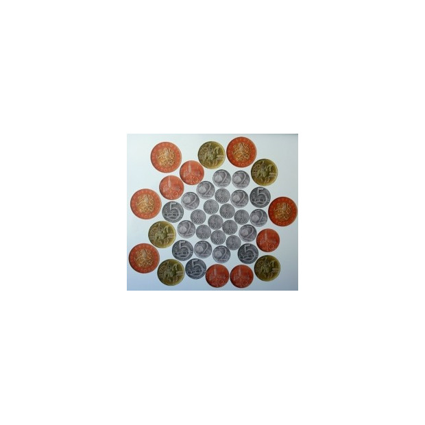 Plná sada obsahuje celkem 40 žetonů v těchto hodnotách: