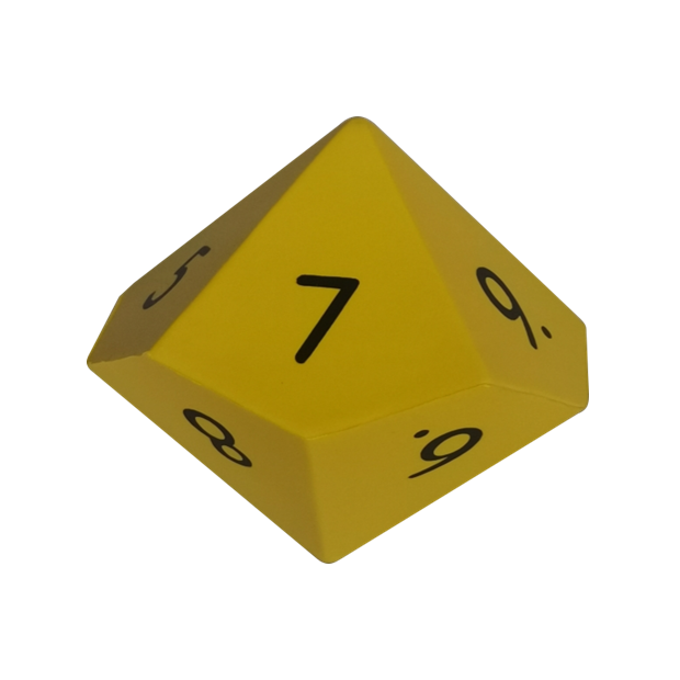 Kostka je z pěnové hmoty, průměr je cca 13 cm. Ve žluté barvě, s černými číslicemi. Číslice 6 a 9 jsou odlišeny tečkou za číslicí.