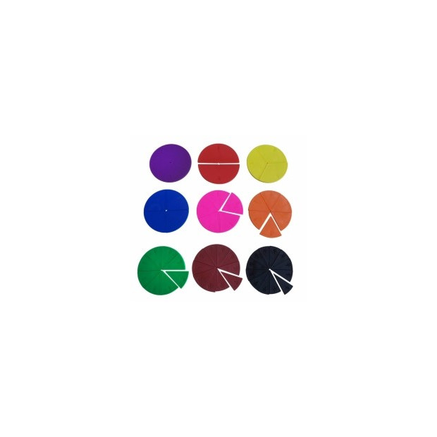 Sada obsahuje 9 různobarevných plastových kruhů o průměru 10 cm, rozdělených na dvanáctiny, desetiny, osminy, šestiny, pětiny, čtvrtiny, třetiny, poloviny a jeden celek. Každý dílek na sobě má vyražen zlomek, který reprezentuje.