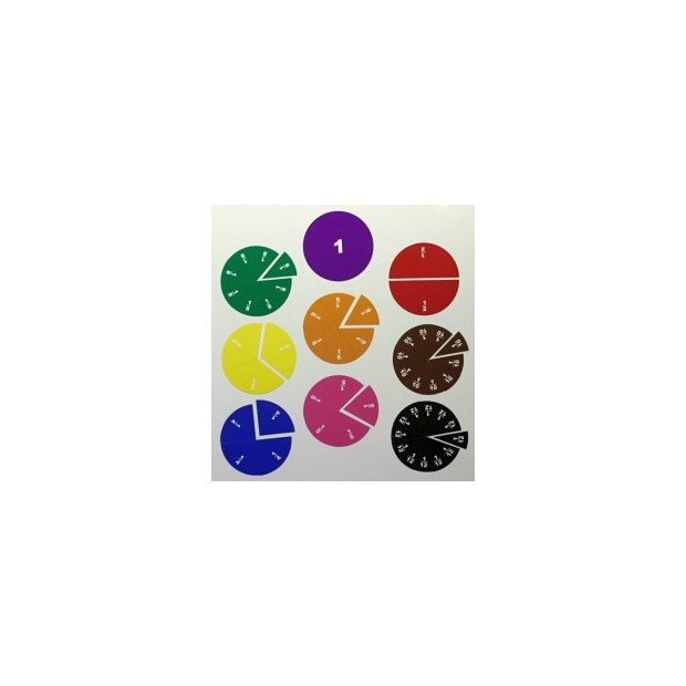Sada obsahuje 9 různobarevných plastových kruhů o průměru 24 cm, rozdělených na dvanáctiny, desetiny, osminy, šestiny, pětiny, čtvrtiny, třetiny, poloviny a jeden celek. Na každém dílku je bíle vytištěn zlomek, který reprezentuje. Barevnost kruhů odpovídá žákovské sadě.