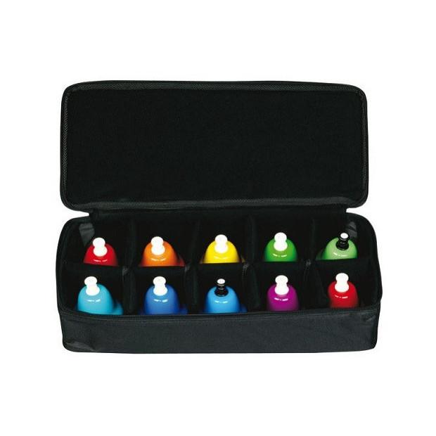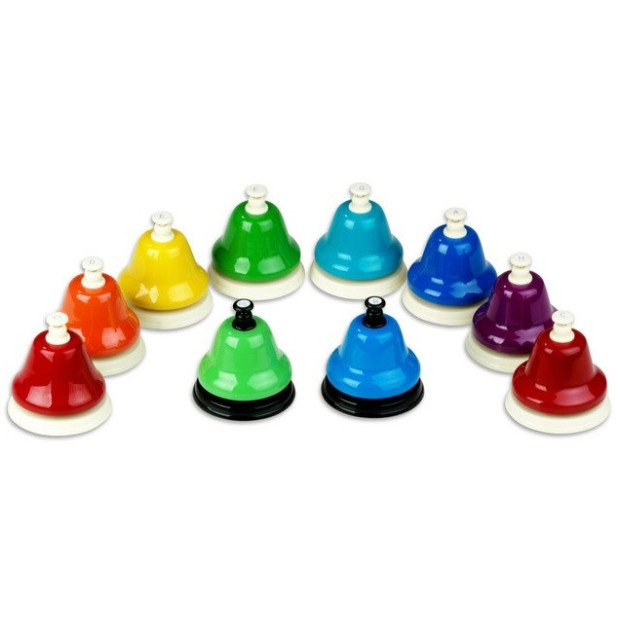 Diatonická sada 10 barevných zvonků C2 – C3 s fis2 a hes2. Při zmáčknutí tlačítka zvonek vydá tón. Vhodné pro individuální i kolektivní aktivity, jednotlivé zvonky může pedagog využít také pro získání pozornosti žáků, například při ukončení individuální aktivity nebo pro sjednání ticha.