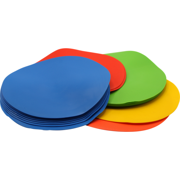 Sada velkých gumových kruhů o průměru 30 cm, vhodná na krokování, ale také na jakékoliv jiné aktivity, kdy potřebujete vyznačit určitá místa na zemi.