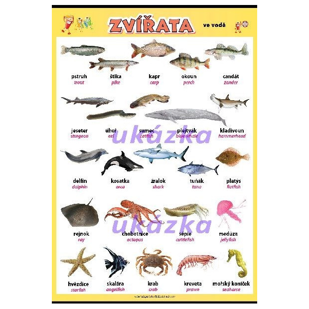 Názorné fotografie zvířat ve vodě určené pro seznamování se s přírodou.