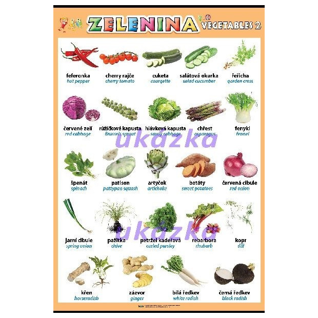 Názorné fotografie určené pro první seznamování se s dalšími druhy zeleniny.