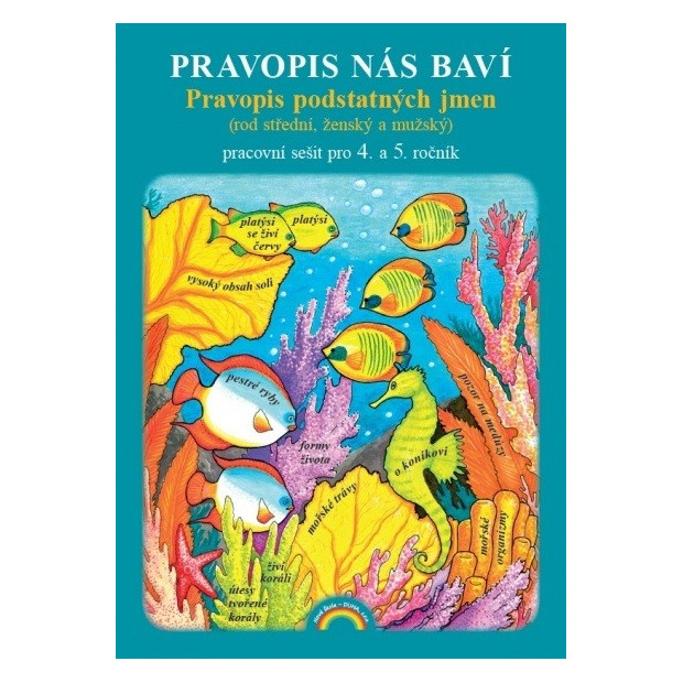 Dvoubarevný pracovní sešit je součástí nové moderní řady Čeština nás baví. Pravopis podstatných jmen se postupně probírá podle rodů. V úvodu je vždy přehledná tabulka učiva, následuje návod s příkladem, kde je učivo vysvětleno – např.: Jak určím, ke kterému vzoru podstatné jméno patří. Poté následují cvičení na upevnění daného učiva, a to vždy od jednodušších ke složitějším. V závěru pracovního sešitu jsou zařazena souhrnná opakovací cvičení, kde se procvičují všechny rody a pravopisné jevy společně. Součástí sešitu jsou i souhrnné diktáty a klíč s řešením všech cvičení. Sešit doplňuje motivační prvek – samolepky.