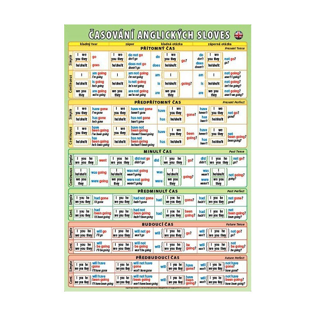 Nástěnný obraz pro výuku časování anglických sloves (přehled všech časů)