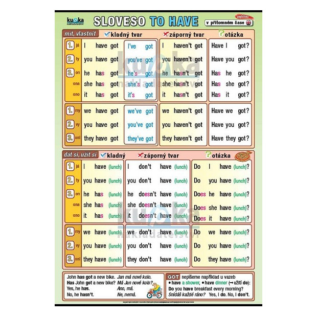 Nástěnný obraz časování anglického slovesa TO HAVE (GOT) v přítomném čase.