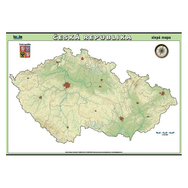 Nástěnný obraz pro výuku zeměpisu – slepá mapa České republiky