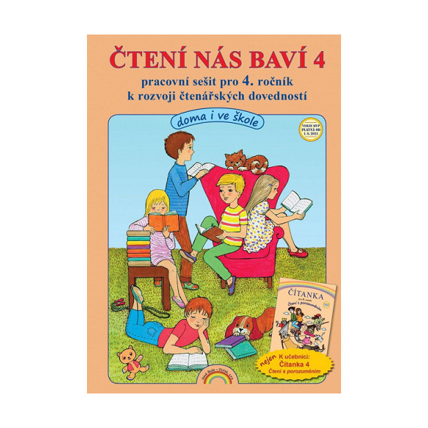 Barevný pracovní sešit. Velký důraz je kladen na rozvoj čtenářské gramotnosti a kompetence k řešení problémů. Doplňuje Čítanku 4 - čtení s porozuměním, ale může být používán i samostatně bez čítanky. Jedna strana dvojstránky obsahuje jednodušší úkoly ke známým ukázkám a sousední strana je rozvíjející se složitějšími úkoly. Zde najdete literární ukázky z dalších knih pro děti a cvičení k nim. Nejdůležitější jsou cvičení zaměřená na ověření porozumění obsahu textu, dále cvičení na rozvoj vlastní tvořivosti a samostatného myšlení. Cílem PS je podněcovat u dětí zájem o čtení a literaturu a prostřednictvím rozvoje čtenářské gramotnosti podporovat zájem o celoživotní učení.