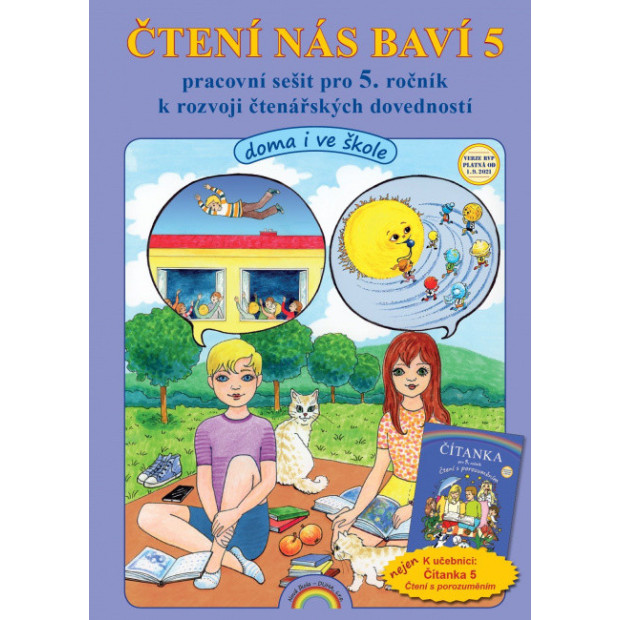 Pracovní sešit Čtení nás baví 5 je moderní výukový materiál, plný zajímavých úkolů a obrázků, zpracovaný podle nejnovějších trendů a v souladu s RVP ZV. Velký důraz je kladen na rozvoj čtenářské gramotnosti spolu s rozvojem klíčových kompetencí dětí, zejména pak kompetence k učení a kompetence k řešení problémů.