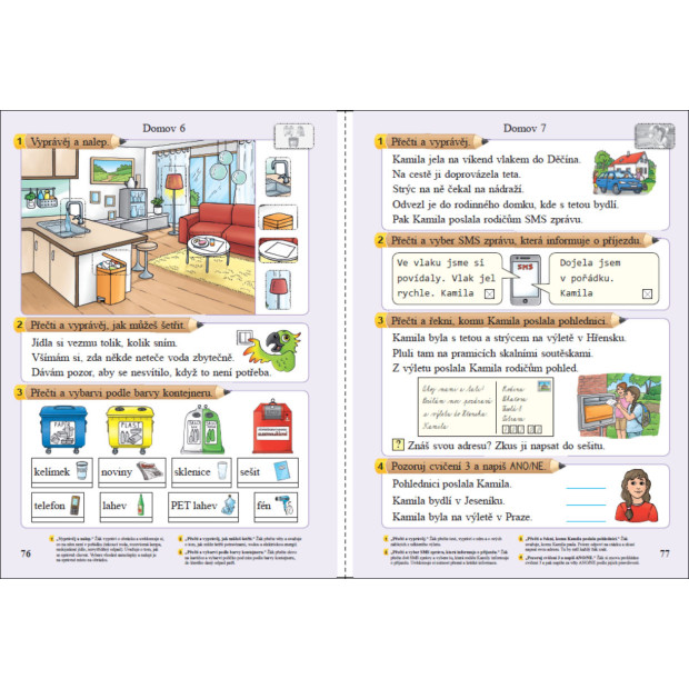 4. POUŽÍVÁNÍ SAMOLEPEK: Přílohou učebnice je sada samolepek, které žáci využívají ve vybraných cvičeních a pro lepší orientaci v probírané látce (nahrazuje vystřihování a lepení lepidlem).