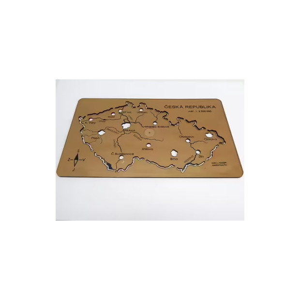 Šablona Česká republika je vyrobena z kouřového průhledného polystyrenu. Je určena pro práci s ohrocenou tužkou nebo mikrotužkou. Umožňuje kreslení obrysu České republiky v měřítku 1 : 2 500 000 a polohy významných měst. Dále jsou na šabloně vyznačeny důležité řeky. Názvy měst jsou označeny černým a řeky s jejich názvy modrým sítotiskem, který je při běžném používání odolný proti opotřebení. Šablona je určena pro použití ve škole a hobby. Zabalena je do celotransparentního polypropylenového pouzdra s papírovou vložkou, na které je natištěn přehled některých přírodních podmínek ČR. Pouzdro je opatřeno eurozávěsem.