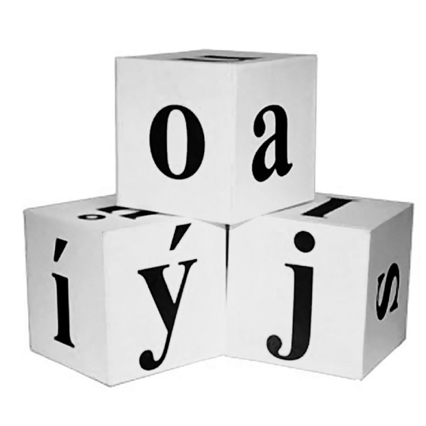 Trojrozměrná pomůcka – soubor tří demonstračních kostek o hraně 9 cm . Jsou na nich základní písmena, která jsou probírána v Živé abecedě a na začátku Slabikáře: souhlásky – m, l, s, p, t, j; samohlásky – a, e, i, o, u, y – krátké a dlouhé. Slouží k vyvozování písmen, ale zejména pak k nácviku čtení prvních slabik.
